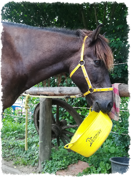 Irgendwann fing er mehr und mehr an zu stolpern, die Röntgenbilder zeigten keinerlei Auffälligkeiten, so war es wohl einfach das Alter (der Kopf will ja oft mehr als der Körper noch kann….). Seit 5 Jahren war er deswegen in Rente, er wurde von allen verwöhnt und umsorgt, bekam viele Schüsseln mit Heucobs und Seniormüsli täglich, das genoß er natürlich sehr, und wußte es auch einzufordern, aber er hat es sich einfach auch verdient.